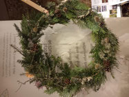 Nous réalisons ensemble une couronne avec des branches et nous la garnissons avec des fleurs séchées.